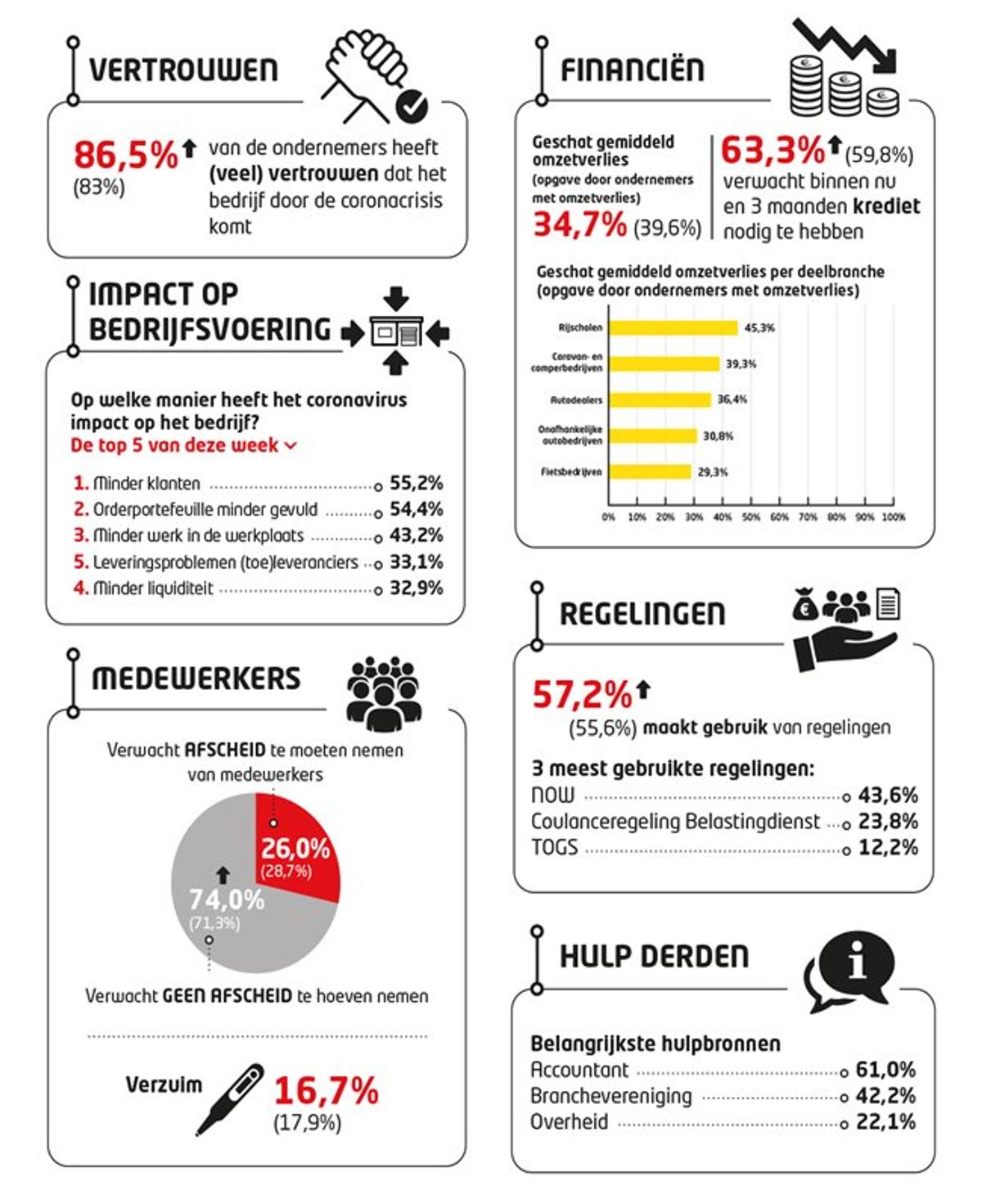 Nog niet eerder was het vertrouwen onder BOVAG-bedrijven zo hoog sinds het bestaan van de BOVAG Coronamonitor. In deze achtste ledenpeiling geeft 86,5 procent van de deelnemers aan vertrouwen te hebben om door deze crisis heen te komen. Dat blijkt ook uit het feit dat dat weer minder ondernemers afscheid denken te moeten nemen van hun personeel (26 procent tegen 28,7 procent twee weken geleden). Kanttekening is wel dat de uitkomsten bij de verschillende branches hier en daar nogal uiteen lopen.
