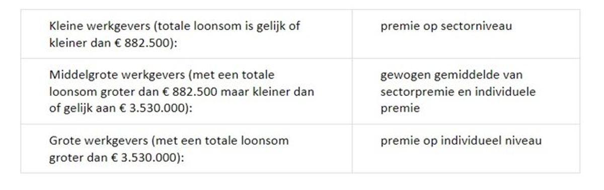 Elke bij het UWV verzekerde werkgever wordt ingedeeld in één van de drie grootteklassen, namelijk kleine, middelgrote of grote werkgever. De indeling is bepalend voor de wijze waarop de gedifferentieerde premie wordt berekend:
