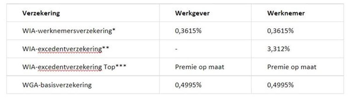 *** De premie voor de WIA-excedentverzekering Top is een premie op maat en wordt berekend over het jaarinkomen tussen € 100.000 en € 300.000.