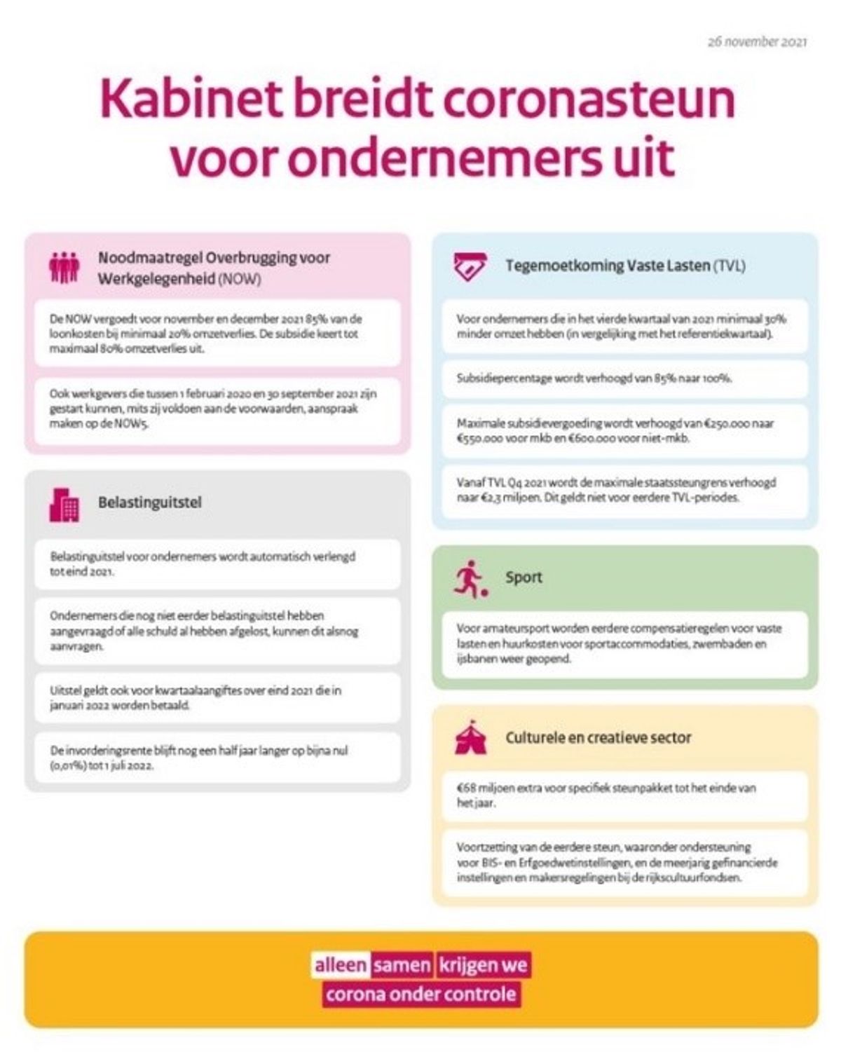 De uitbreiding van het steunpakket komt bovenop de coronasteun die het kabinet op 16 november 2021 aankondigde.