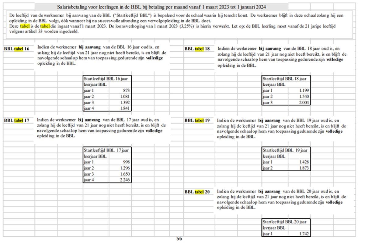 Door de loonsverhoging voor de BBL-studenten zijn ook de loontabellen voor BBL-ers aangepast. Hieronder de nieuwe tabel: