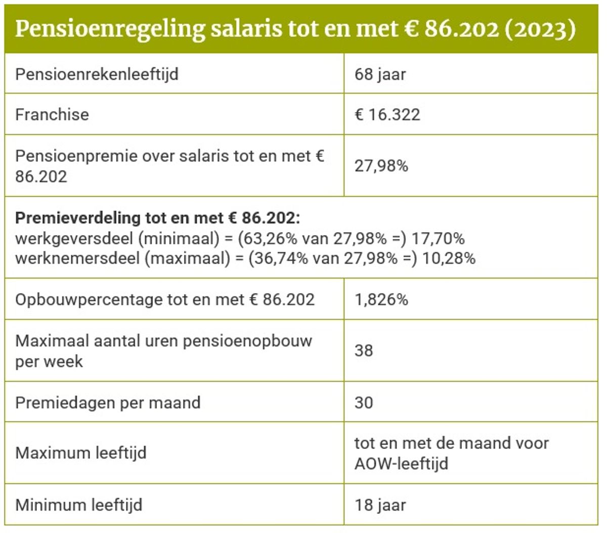 Direct naar inzendportaal.nlVoor het berekenen van het pensioen wordt verschil gemaakt tussen salarissen tot en met 86.202 en daarboven. Zie daarvoor de tabellen hieronder. Bekijk hier een