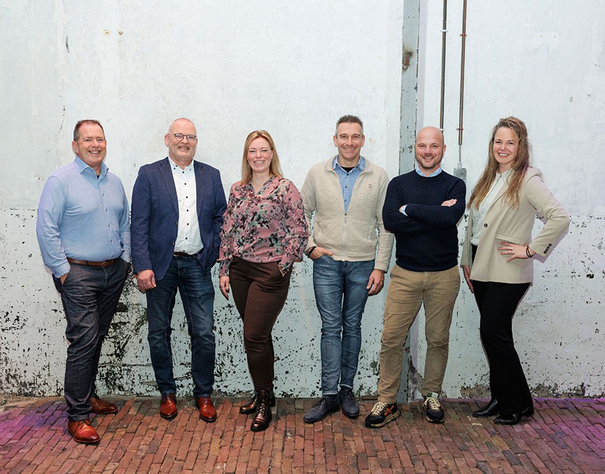 Van links naar rechts: Theo de Jong (bestuurslid), Rolf Reinders (voorzitter), Marjolijn Wegkamp (bestuurslid), Bart Schoones (bestuurslid), Dick van de Berg (bestuurslid) en Claudia van Engelenburg (branchemanager BOVAG Caravan- en Camperbedrijven). Bestuurslid Martijn de Boer staat niet op de foto.