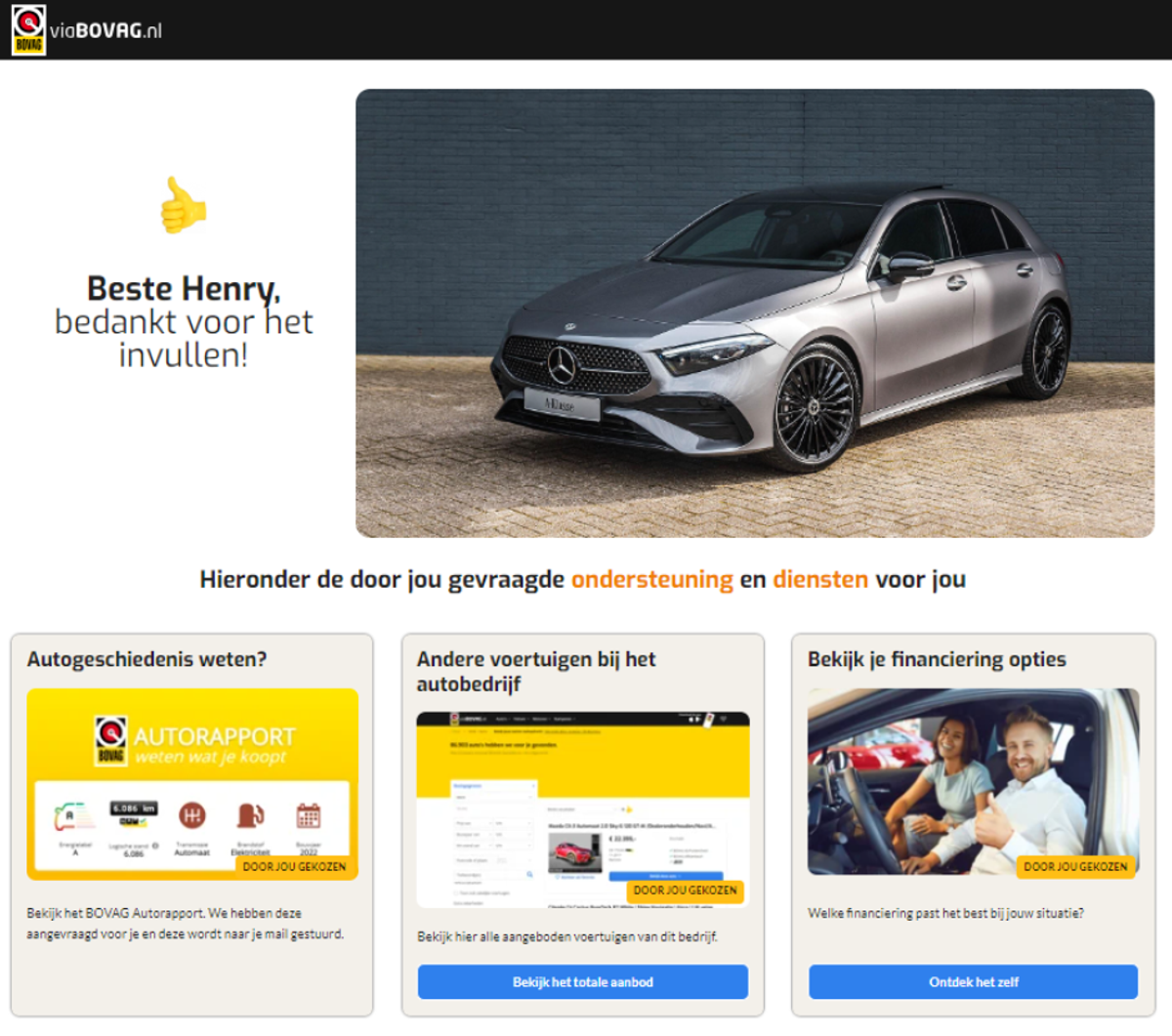 . Inmiddels wordt er ook opvolging gegeven aan consumenten die op viaBOVAG.nl een inruil- of contactverzoek doen.
