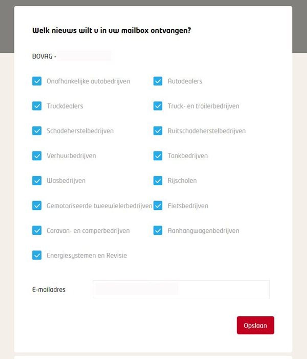 Wekelijks komt er een nieuwsbrief van BOVAG in uw mailbox terecht met verschillende nieuwsberichten die (naar alle waarschijnlijkheid) relevant voor u zijn.