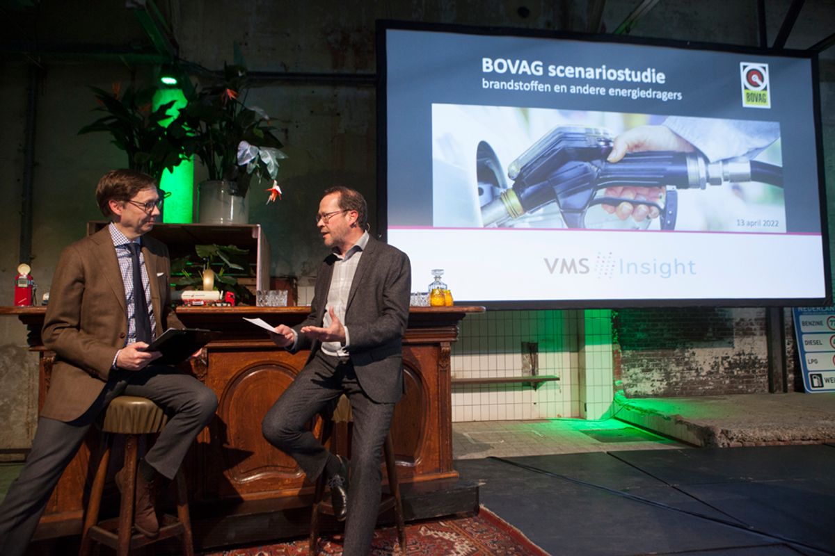 Eric Vousten van VMS Insight werd na het waterstofdebat uitgenodigd het rapport toe te lichten over de ontwikkeling van brandstoffen in 2025 en 2030, dat het bureau maakte in opdracht van BOVAG. Zijn conclusie: in 2030 wordt er een derde minder diesel en kwart minder benzine getankt dan in 2021.