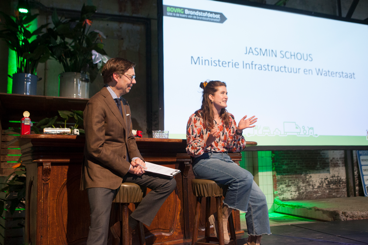 Jasmin Schous, EU-coördinator Duurzame Mobiliteit Ministerie bij I&W, spiegelde de zaal in een gesprekje met de dagvoorzitter maatregelen voor die de mobiliteitsbranche gaan raken. Er zijn plannen voor nog scherpere CO2-normen voor personenauto’s en lichte bedrijfswagens en het garanderen van voldoende laadinfrastructuur, ook komt er een nieuwe richtlijn die bepaalt dat het aandeel hernieuwbare energie van 32 procent naar 40 procent moet.