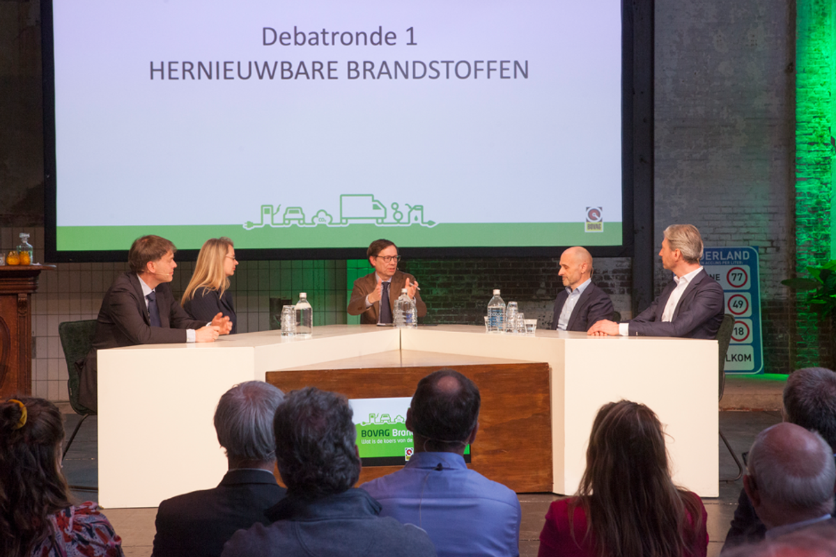 Kan de brandstoftransitie zonder hernieuwbare brandstoffen (biobrandstoffen)?, was de centrale vraag tijdens de eerste ronde van het debat. Nee, vond Eric van den Heuvel, directeur Platform Hernieuwbare Brandstoffen, want zonder hernieuwbare brandstoffen halen we de klimaatdoelen niet. Het beleid voor 2030 stuurt volgens hem maximaal op elektrisch en duwt hernieuwbare brandstoffen dankzij een aftopping in het Klimaatakkoord onbedoeld uit het systeem. “Het resultaat is dat in 2030 nog zo’n 80 procent fossiele brandstoffen in het systeem zitten.”
