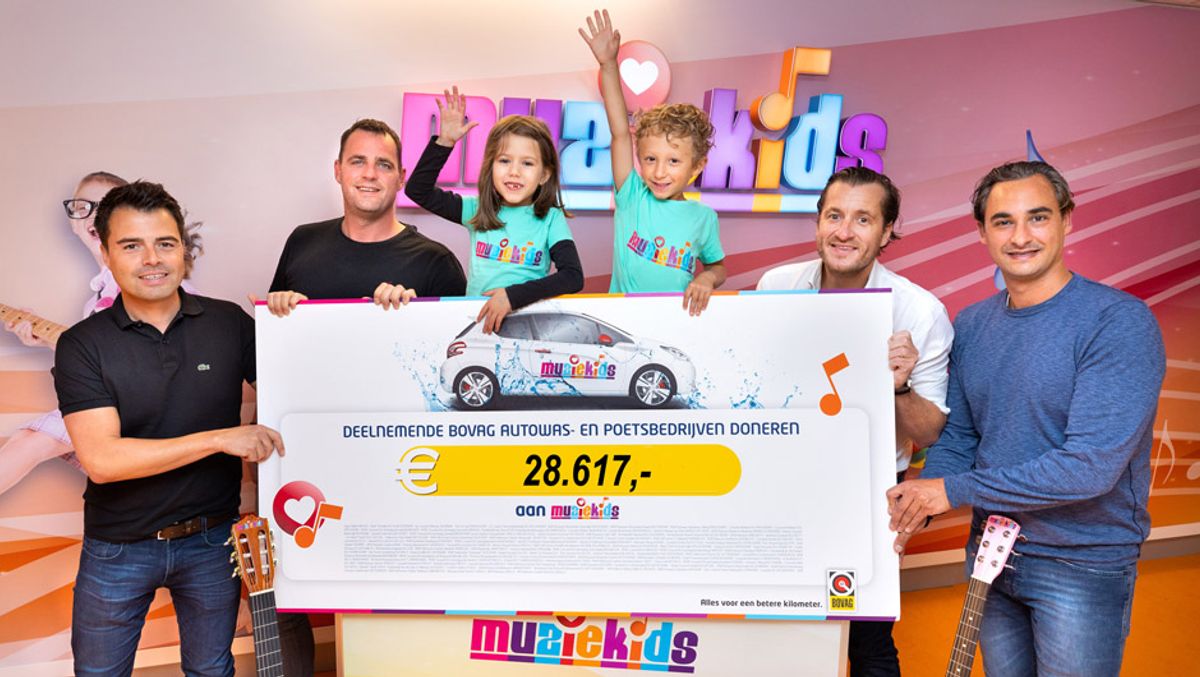 De 118 deelnemende autowas- en poetsbedrijven die meededen met de BOVAG Nationale Autowasdag hebben maar liefst 28.617 euro ingezameld voor de stichting Muziekids. Daarnaast is er nog ruim 1.500 euro aan online donaties binnengekomen naar aanleiding van de actie. Op 3 juli wasten en poetsten autowas- en poetsbedrijven zoveel mogelijk auto’s, waarbij een deel van de opbrengst gedoneerd werd aan het goede doel. De cheque werd op 15 juli door BOVAG uitgereikt in de Muziekids-studio in het Wilhelmina Kinderziekenhuis in Utrecht.
