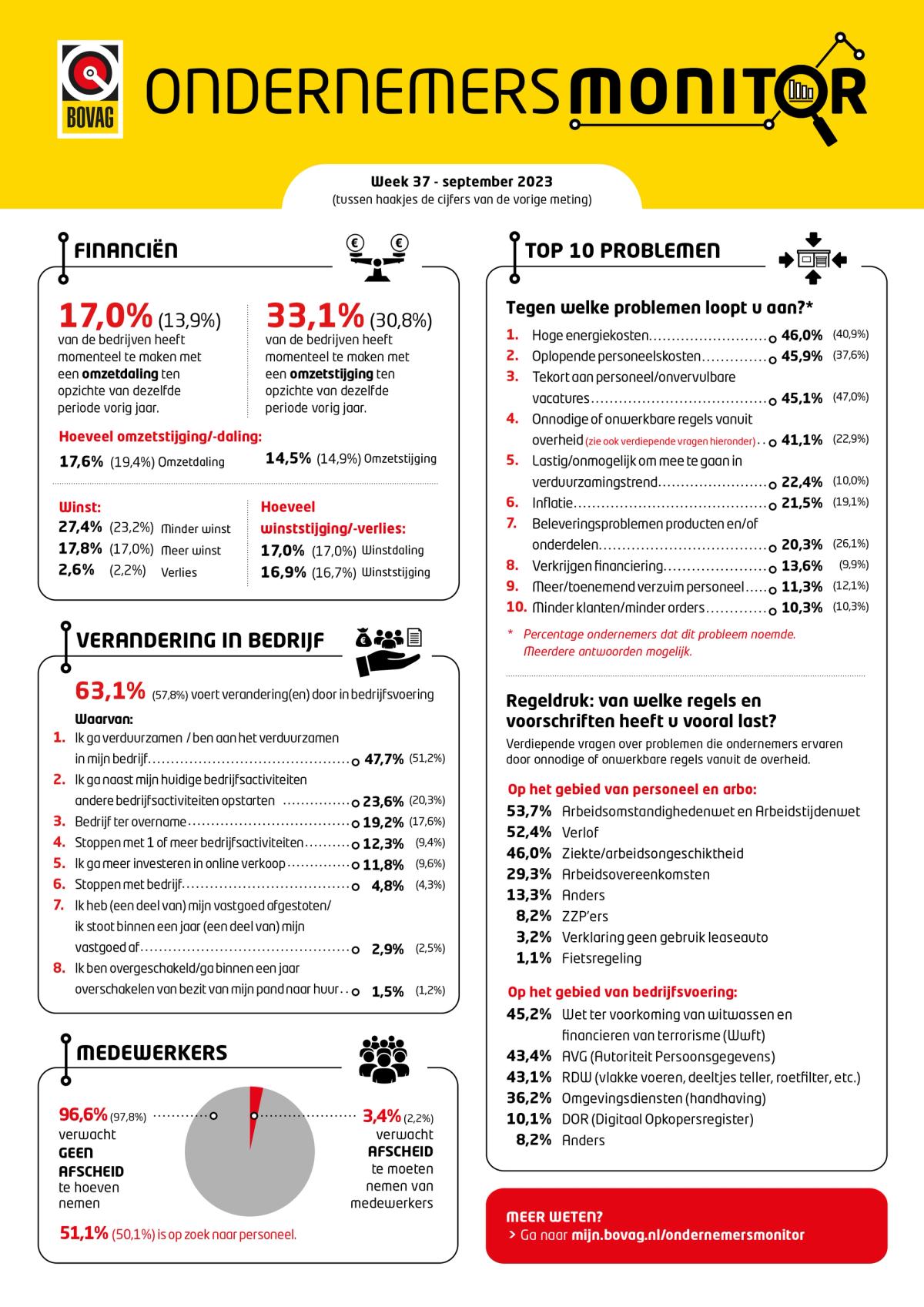 Het percentage BOVAG-ondernemers dat aangeeft last te hebben van onnodige of onwerkbare regels vanuit de overheid is sinds april zowat verdubbeld van 23 naar 41 procent. Dat blijkt uit de BOVAG Ondernemersmonitor van september 2023.