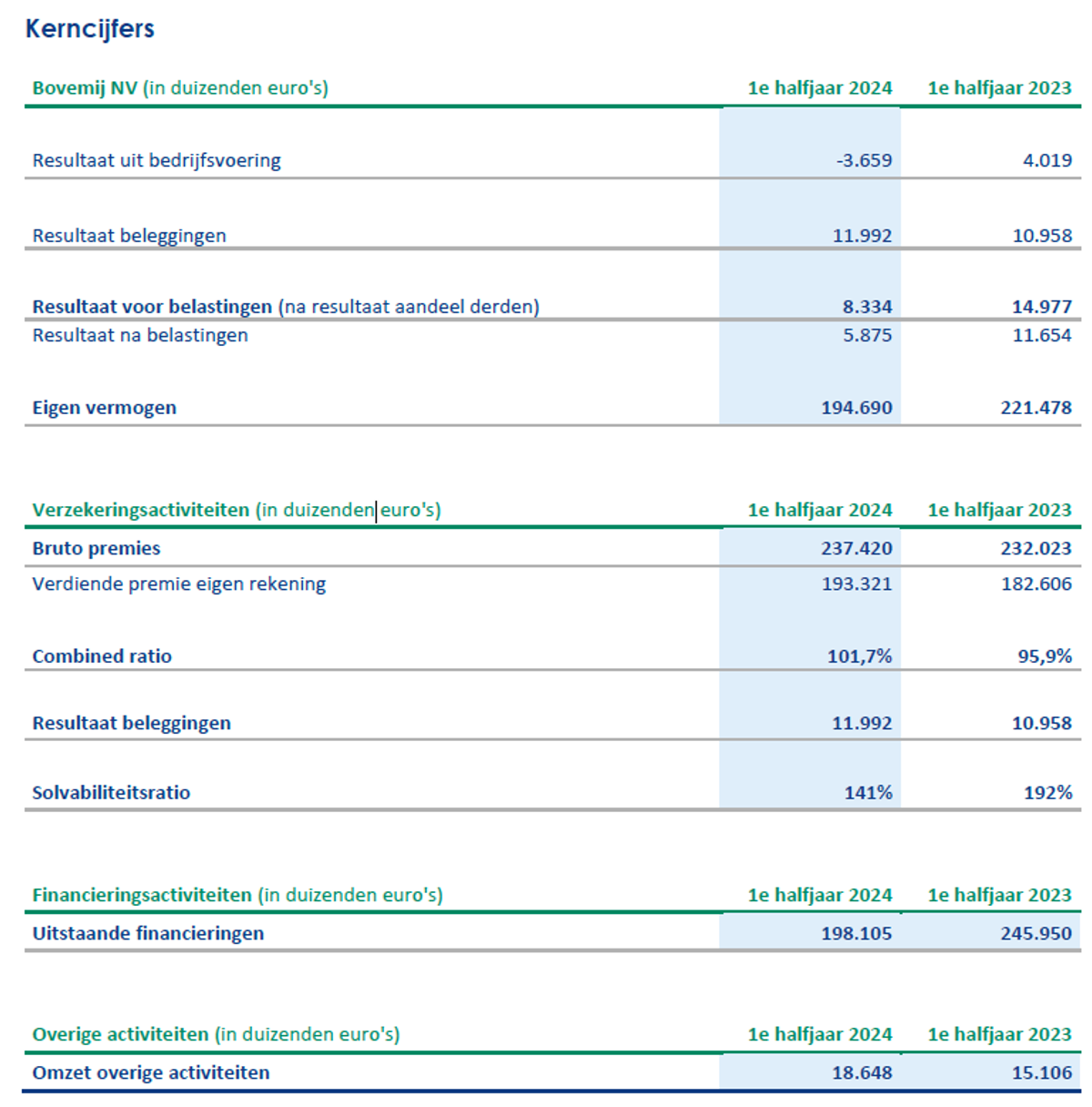 Bovemij publiceerde deze week zijn halfjaarresultaat van het eerste halfjaar 2024 met onderstaand bericht: