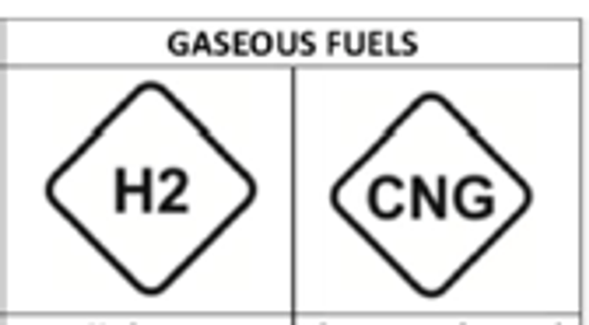H2 staat voor waterstof. CNG staat voor aardgas.