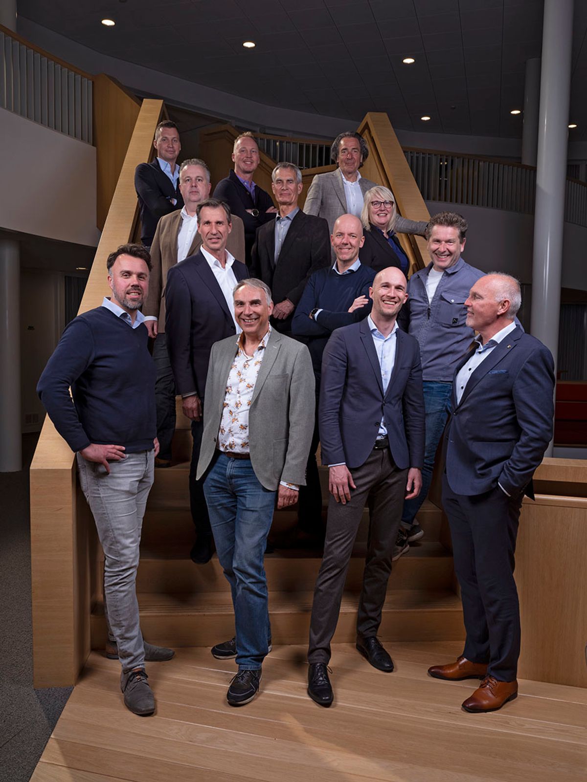 Rij 1: Sieb Elzinga (bestuur), Rens van Abswoude (ledenraad), Stephan Griffioen (branchemanager), Toine Beljaars (voorzitter).
