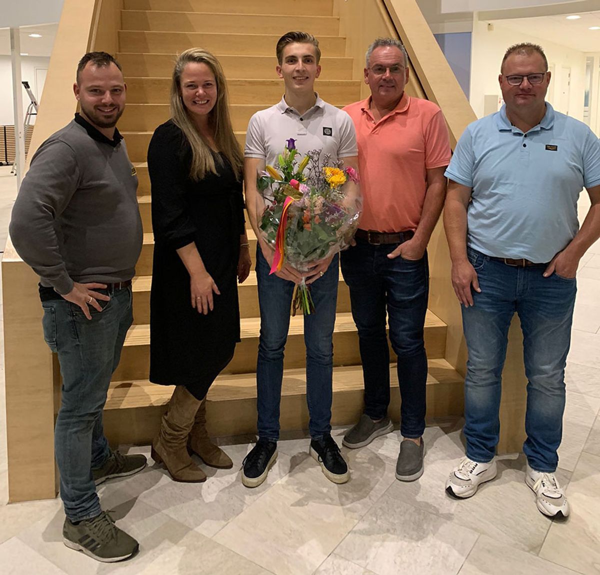 Van links naar rechts: Marco Oudshoorn, Claudia van Engelenburg (branchemanager), Camiel Bouwman, Luviek Maassen en Harm Peters. Afwezig op de foto: Jack Oosterwijk