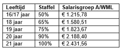 Per januari 2026 gelden voor medewerkers in de jeugdschalen de volgende bedragen per maand: