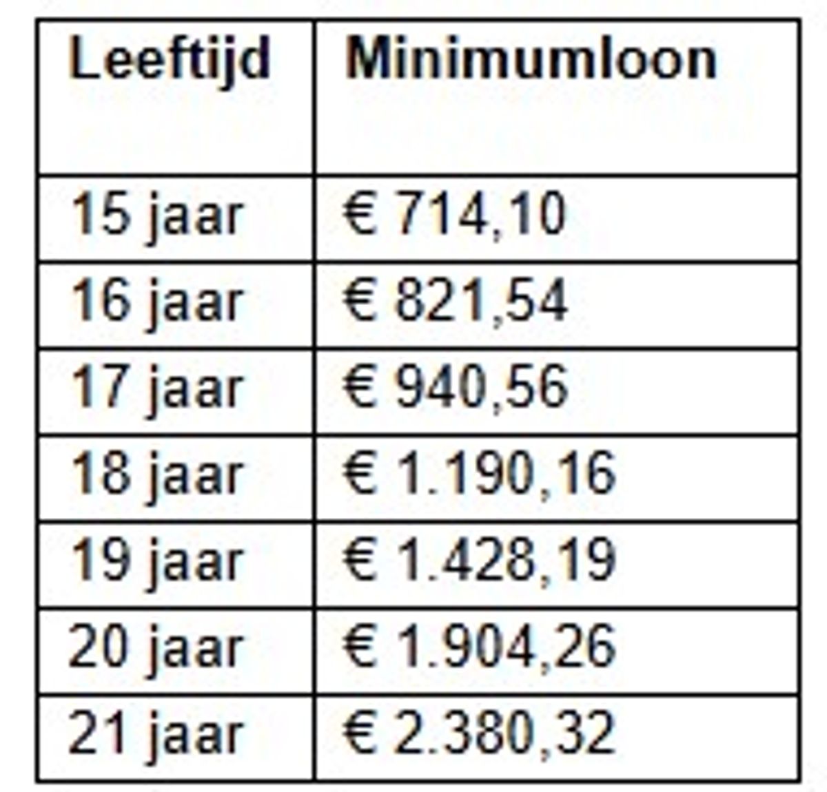 In onderstaande tabel zie je de nieuwe wettelijke minimumuurlonen per 1 juli 2025:
