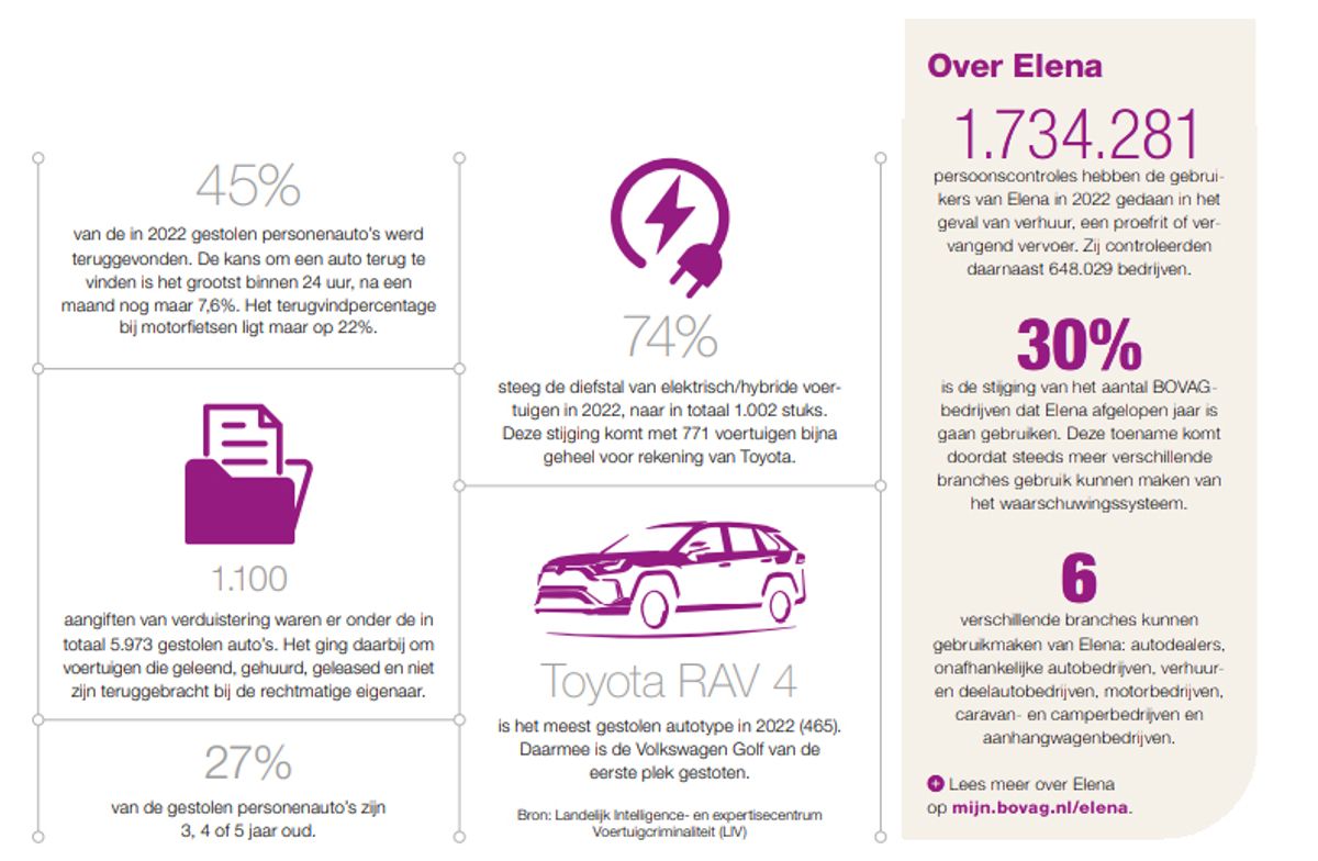 De diefstalcijfers kropen afgelopen jaar weer wat omhoog. Reden om extra alert te zijn als u een auto, motor, caravan, camper of aanhangwagen meegeeft aan een klant. Helemaal nu het voorjaar voor de deur staat en mensen weer volop op pad gaan. U kunt diefstal, schade en onnodig gedoe voorkomen door in het geval van verhuur, een proefrit of vervangend vervoer uw klant te checken in het BOVAG-waarschuwingssysteem Elena.