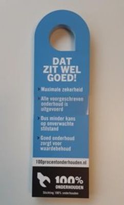 Op de website van 100% onderhouden kun je gratis promotiematerialen downloaden zoals tipkaarten, banners, een video voor op de website en het logo. Ook bestel je hier het speciale promotie-voordeel-pakket.