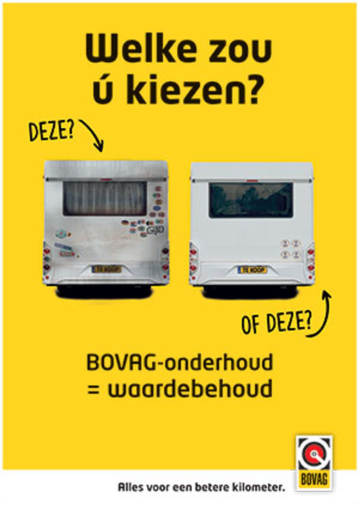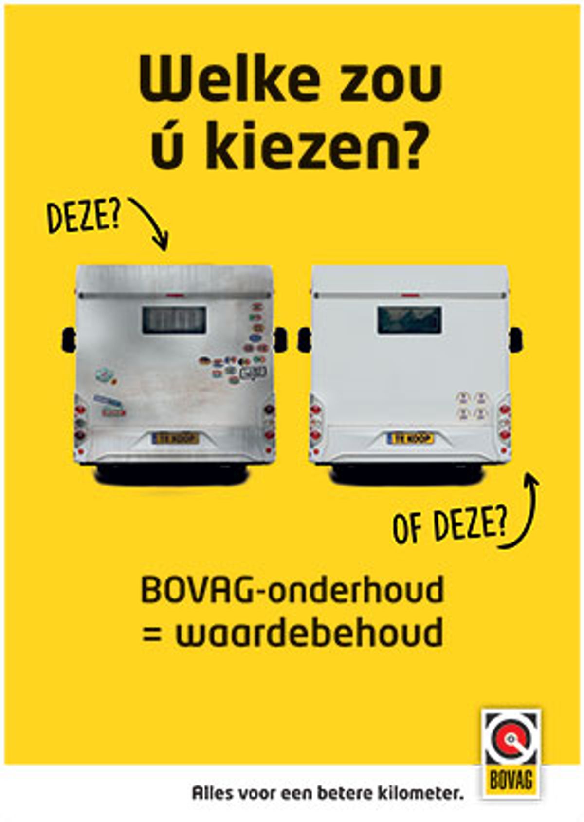 Een goed onderhouden kampeermiddel is meer waard dan een slecht onderhouden exemplaar. Dat weet u, maar weten uw klanten dat ook? Om die boodschap over te brengen heeft BOVAG posters ontwikkeld. U kunt deze posters hieronder downloaden.